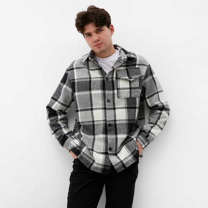 Рубашка мужская в клетку MIST, размер 54, черный/белый
