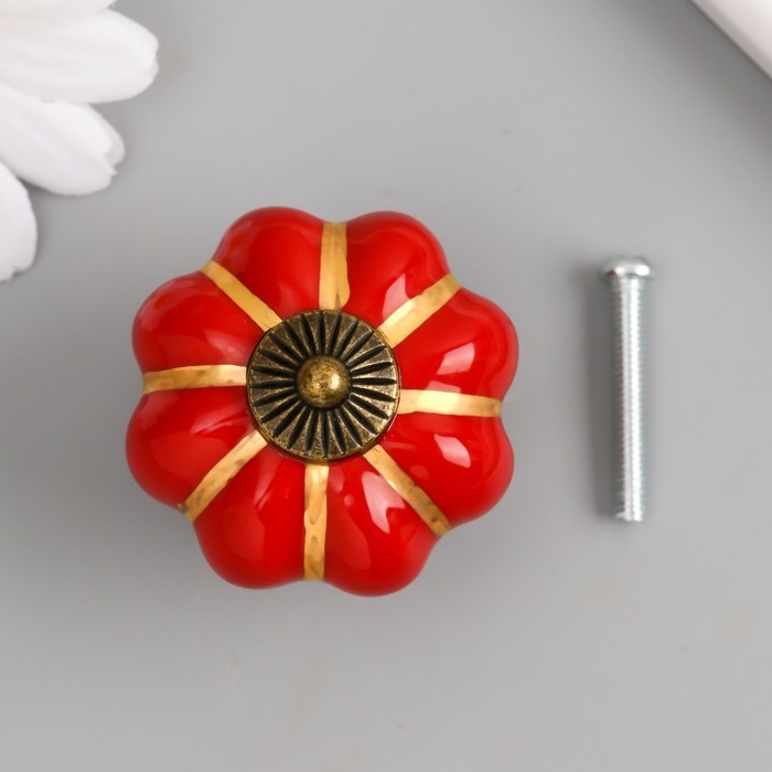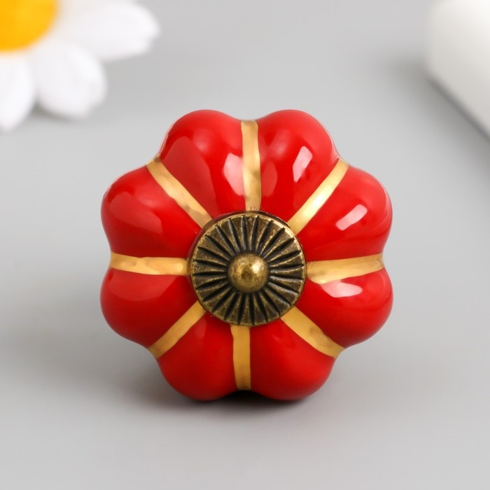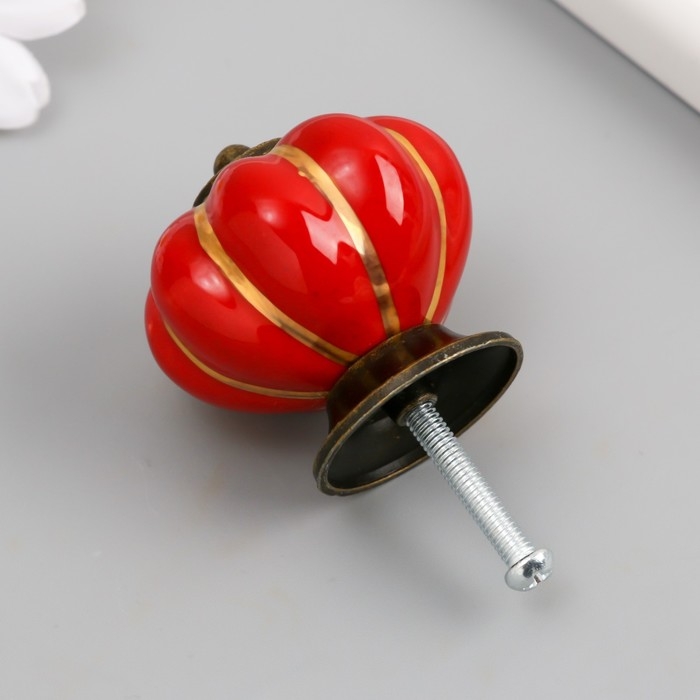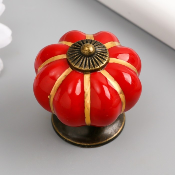 Ручка для шкатулки керамика, металл "Тыковка" красная 4х4х4 см