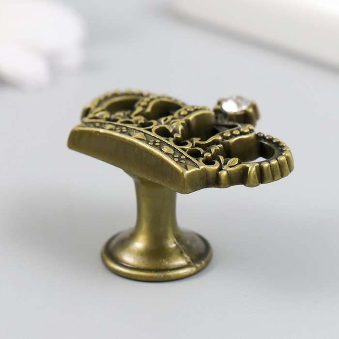 Ручка для шкатулки металл "Корона" страза, состаренная бронза 4,5х3,2х2,6 см