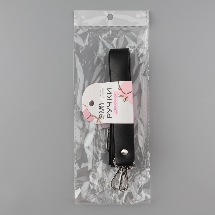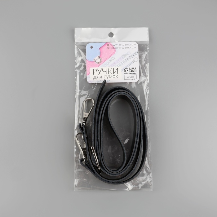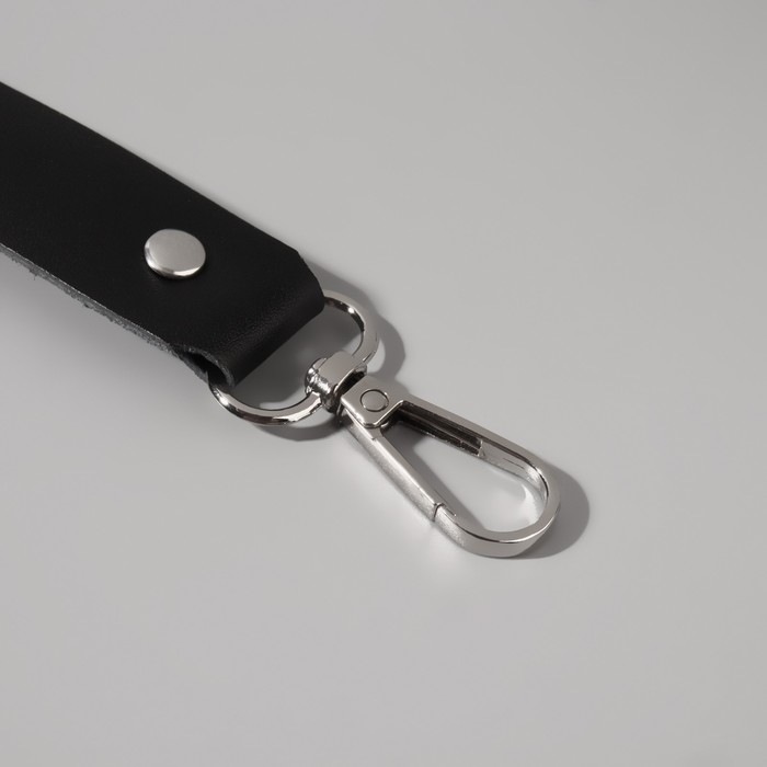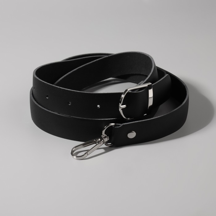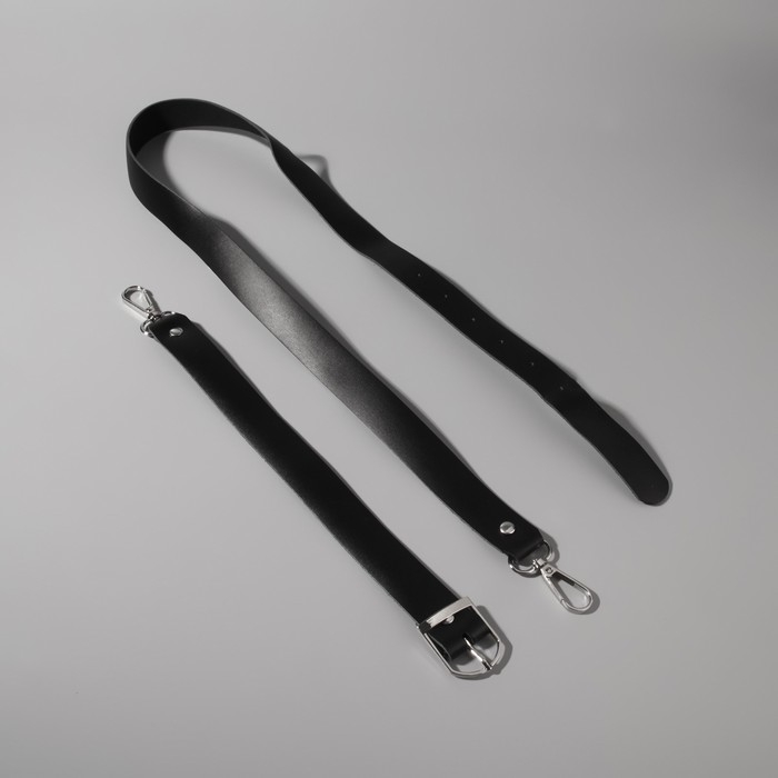 Ручка для сумки из натуральной кожи, регулируемая, с карабинами, 125 ± 2 см × 2,5 см, цвет чёрный/серебряный