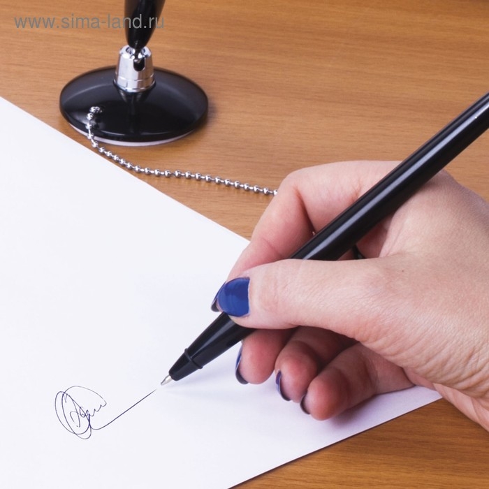 Ручка на подставке "СТЕНД-ПЕН БЛЭК 1", на цепочке, с клейкой основой, чернила синие