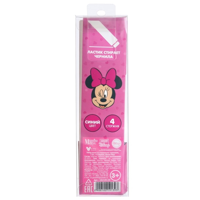 Ручка пиши стирай, 2 штуки, 4 стержня, Минни Маус