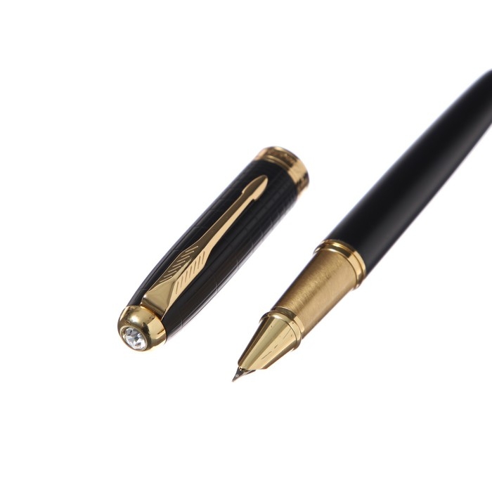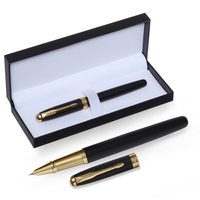 Ручка подарочная перьевая в кожзам футляре, корпус черный, золото
