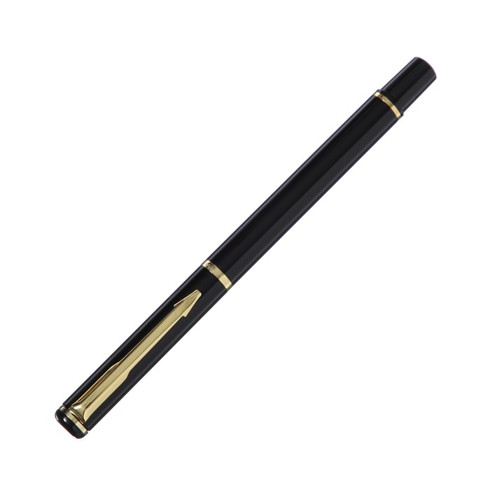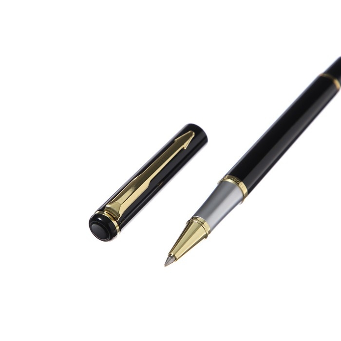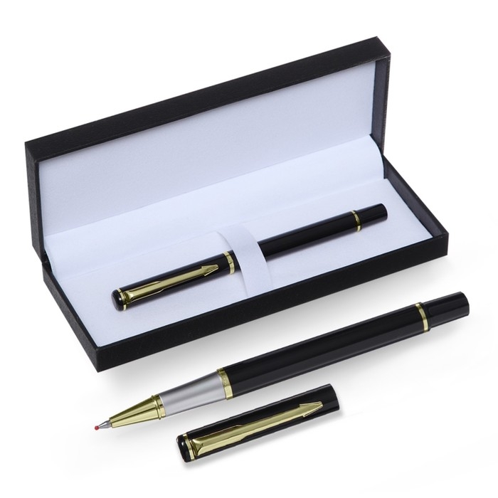 Ручка подарочная роллер в кожзам футляре, корпус черный, золото, серебро