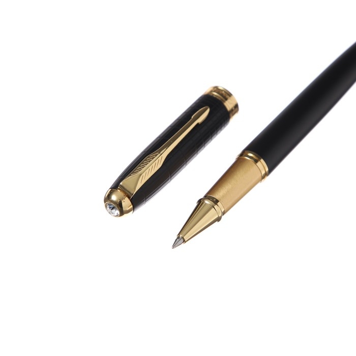 Ручка подарочная роллер, в кожзам футляре, корпус матовый черный, золото