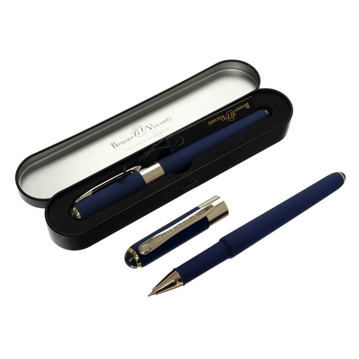 Ручка шариковая, 0.5 мм, Bruno Visconti MONACO, стержень синий, корпус тёмно-синий, в металлическом футляре