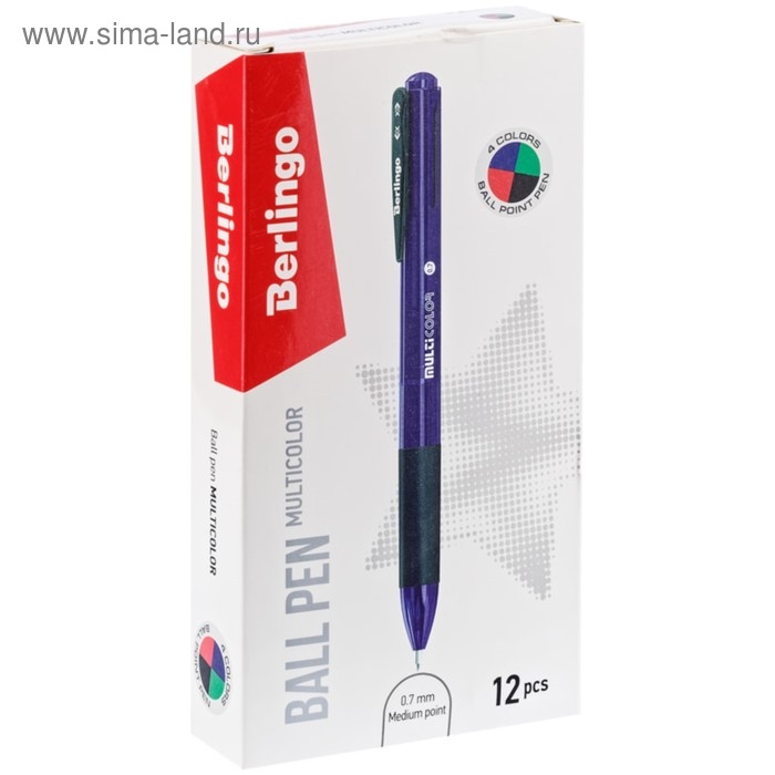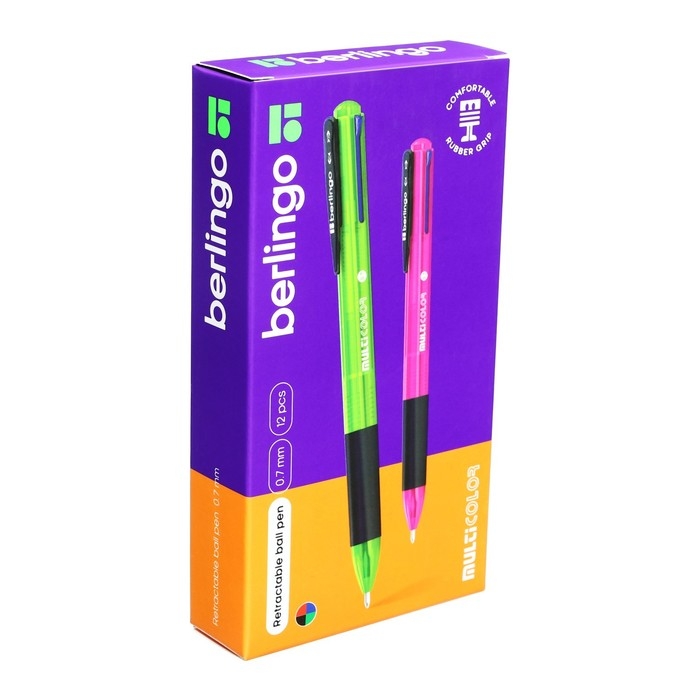Ручка шариковая автоматическая 0.7 мм, Berlingo "Multicolor", микс 4 цвета