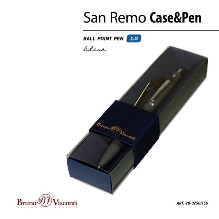 Ручка шариковая автоматическая, 1.0 мм, BrunoVisconti SAN REMO, стержень синий, металлический корпус Soft Touch графитовый, в синем футляре