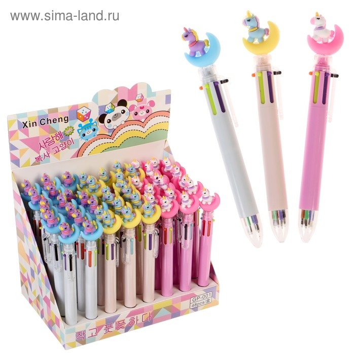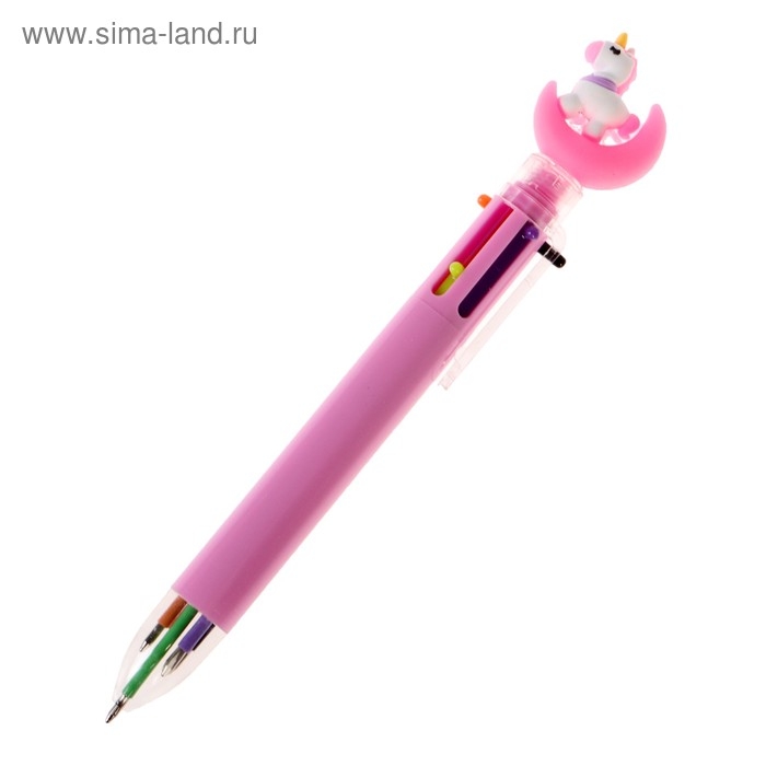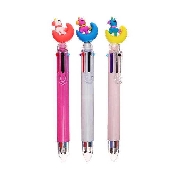 Ручка шариковая автоматическая 6-ти цветная "Единорог на луне", МИКС