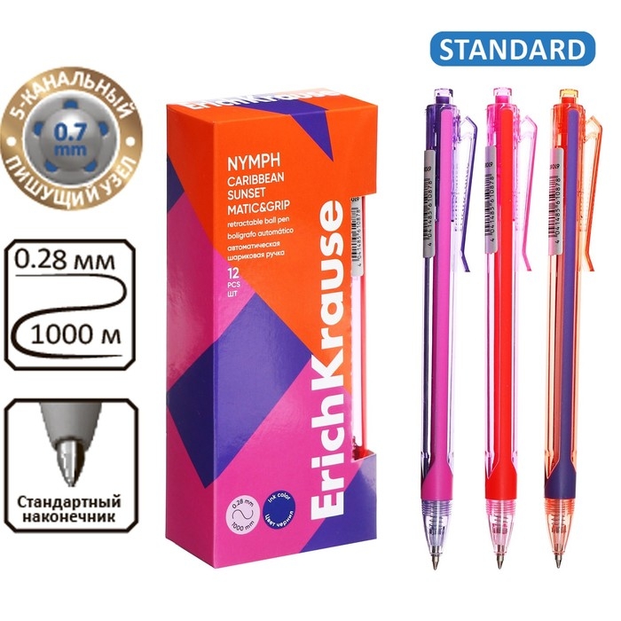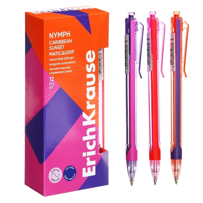Ручка шариковая автоматическая ErichKrause Nymph Matic Carribean Sunset, узел 0.7 мм, чернила синие, длина линии письма 1000 метров