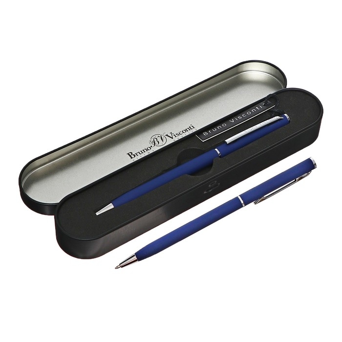 Ручка шариковая поворотная, 0.7 мм, BrunoVisconti PALERMO, стержень синий, металлический корпус Soft Touch синий, в футляре