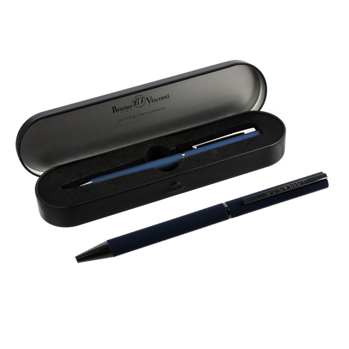 Ручка шариковая поворотная, 1.0 мм, Bruno Visconti Bergamo, стержень синий, синий металлический корпус, в металлическом футляре