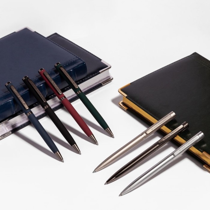 Лаконичный дизайн, прочный металлический корпус, строгость формы подчеркнут статус владельца ручки. Удобство в эксплуатации и тактильно приятные ощущения подарит бархатистое покрытие Soft Touch.