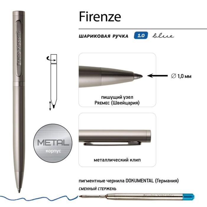 Шариковая металлическая ручка из коллекции FIRENZE от Bruno Visconti - бизнес-аксессуар, с которым вы всегда будете чувствовать себя уверенно и комфортно.