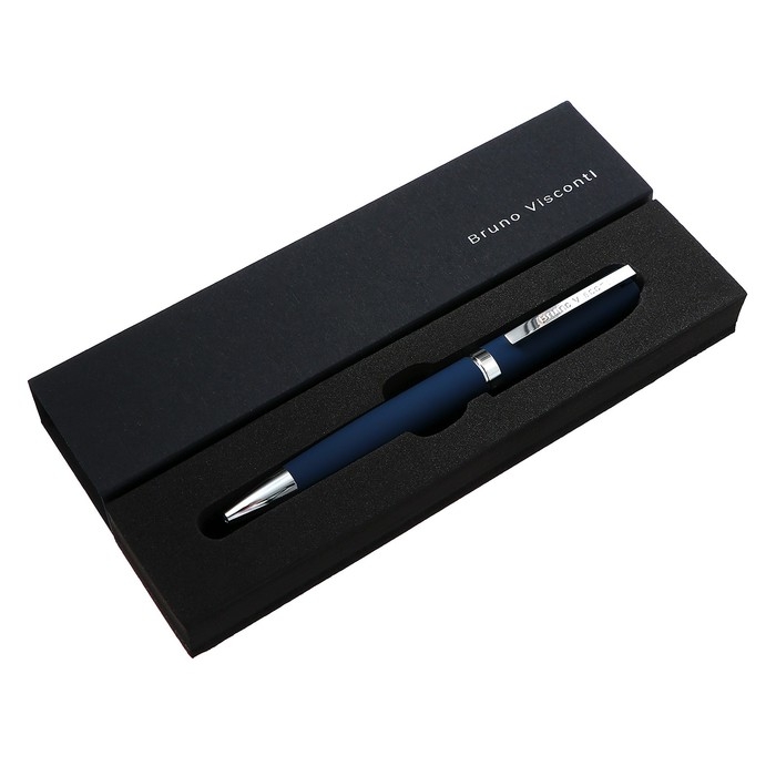 Ручка шариковая поворотная, 1.0 мм, BrunoVisconti MILANO, стержень синий, металлический корпус Soft Touch синий, в футляре