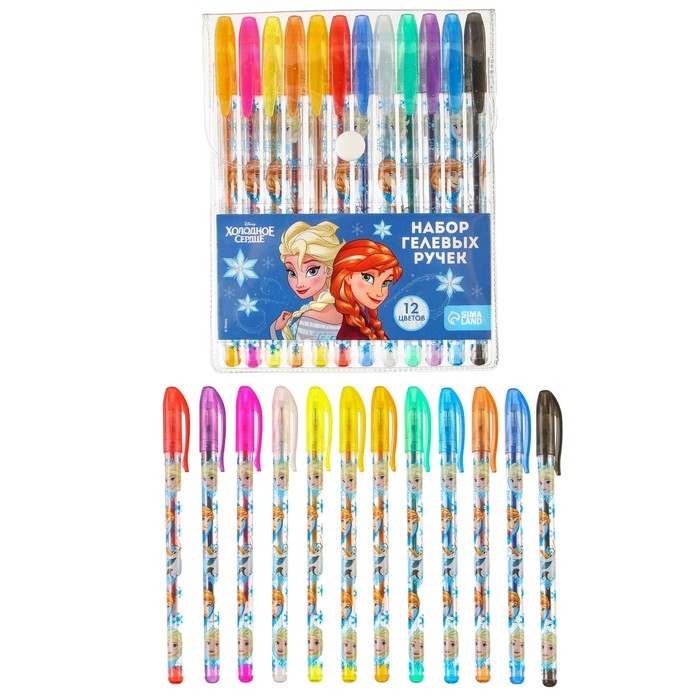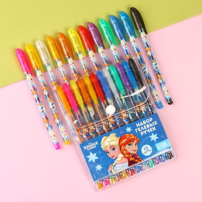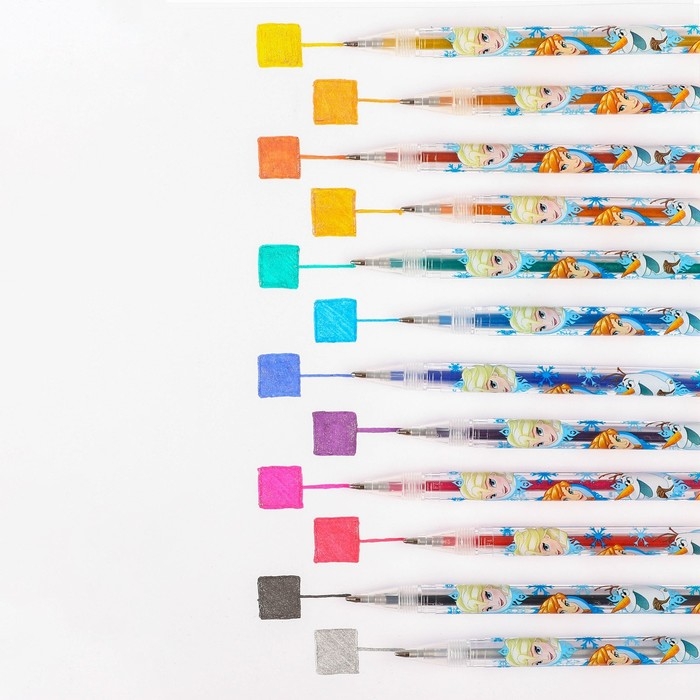 Ручка шариковая с блестками, 12 цветов, Холодное сердце