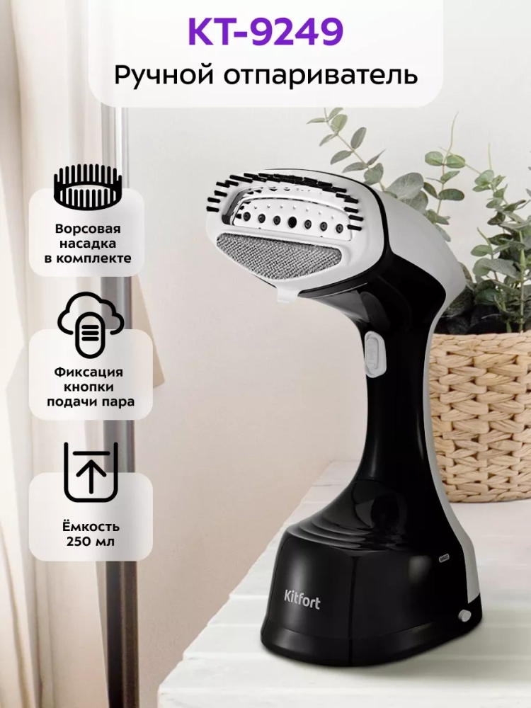 Ручной отпариватель Kitfort КТ-9249 предназначен для разглаживания изделий из текстиля с помощью потока горячего пара. Ручной отпариватель приведет в порядок вещи быстро и практически в любом месте без раскладывания гладильной доски. Одежда при этом может висеть на вешалке, сушилке для белья или веревке. Устройство обладает такими достоинствами, как мощный поток пара, минималистичный дизайн, удобство при использовании и хранении.