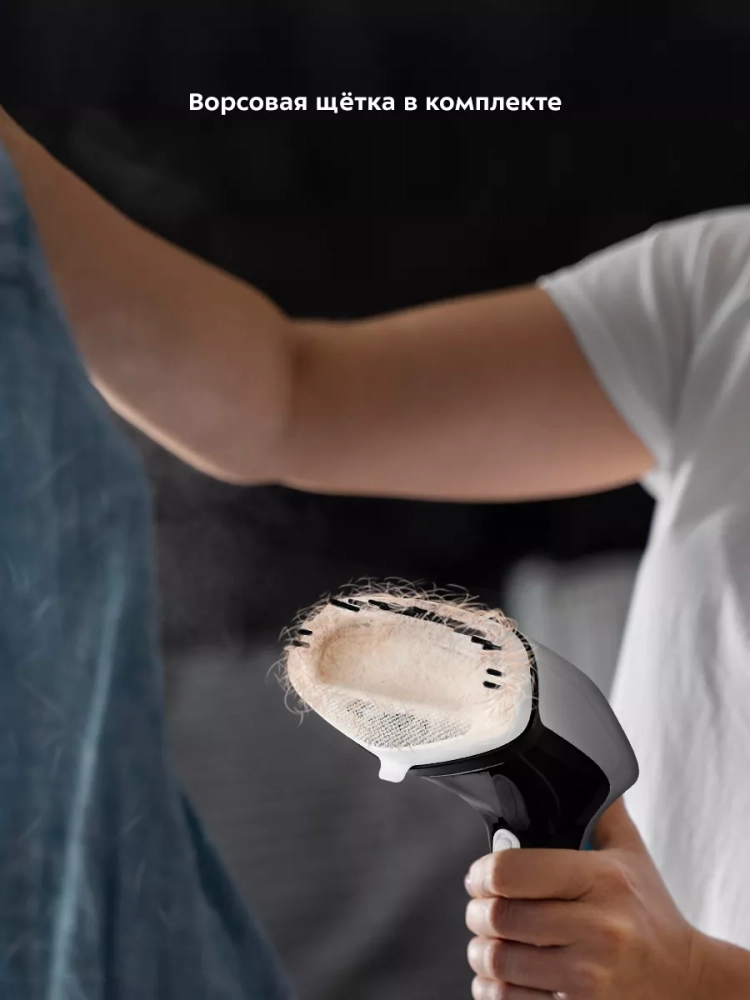 В комплекте предусмотрена ворсовая насадка, которая поможет очистить вещи от пыли, ворса, волос и шерсти домашних животных.