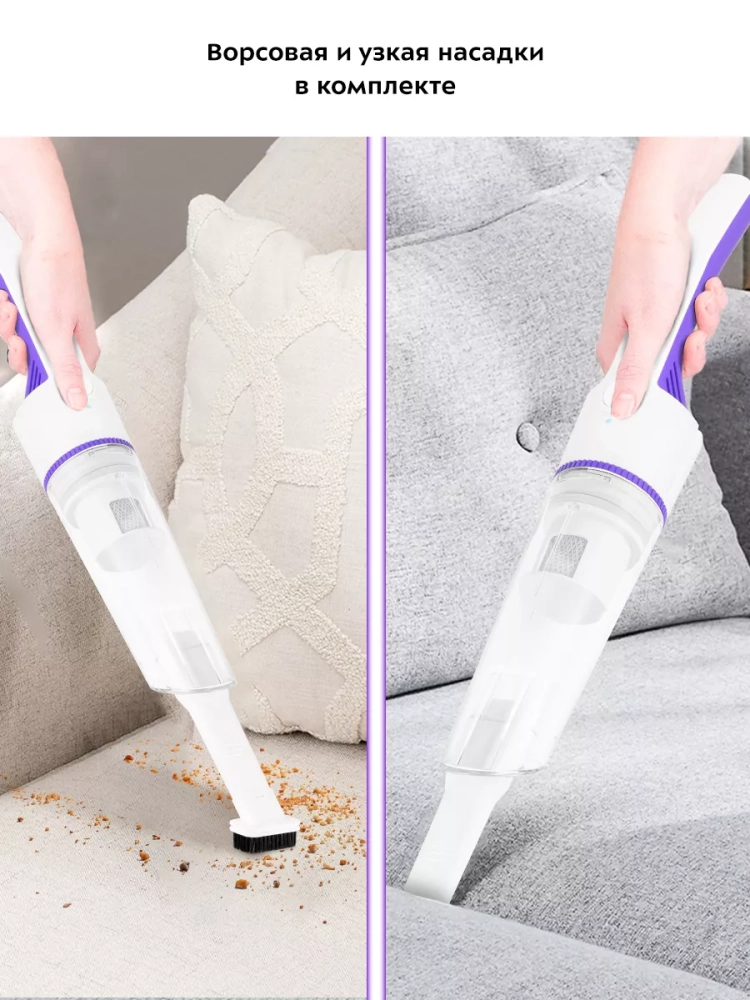 В комплекте к пылесосу идут узкая насадка, ворсовая щетка и насадка для жидкости. Ворсовая щетка подходит для чистки ковровых поверхностей, ковриков в салоне автомобиля и для сбора мелкого сыпучего мусора с неровных поверхностей. Ворс щетки способствует лучшей очистке и не царапает поверхность. Узкая насадка удобна для уборки таких труднодоступных мест, как радиаторы отопления, углубления в мягкой мебели, углы и щели. Насадка для жидкости поможет убрать небольшое количество пролитой жидкости.
