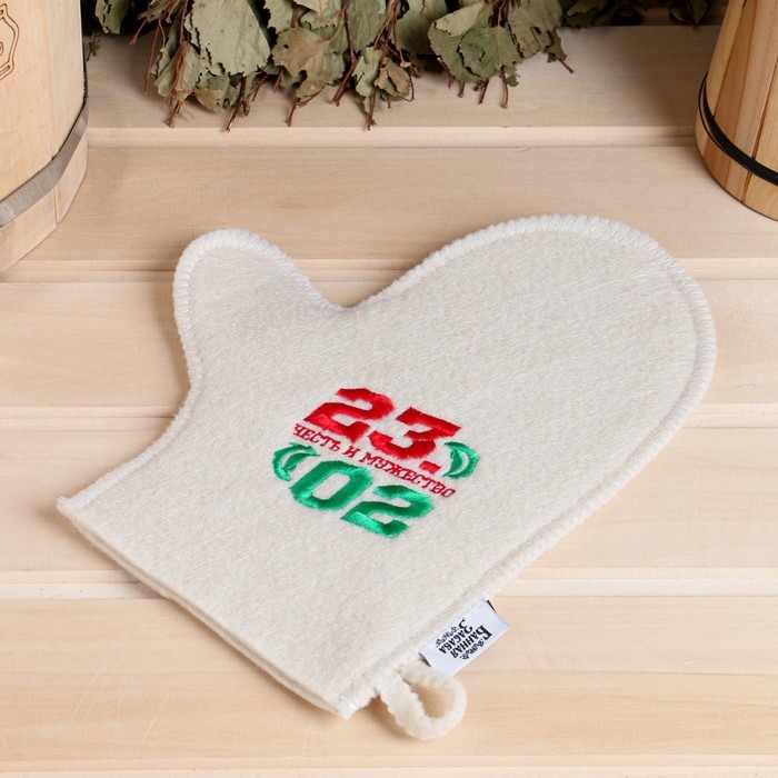 Рукавица для бани войлочная "С 23 Февраля!"