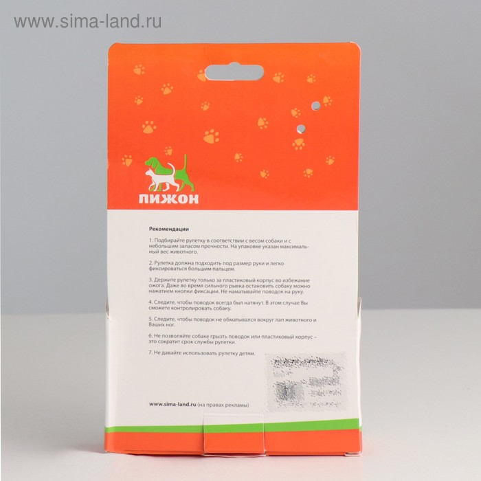 Рулетка обладает прочным пластиковым корпусом, который обеспечивает надежность и долговечность при использовании. Лента, которая находится внутри корпуса, достаточно широка и прочная, что позволяет контролировать движения вашей собаки. Рулетка оснащена стоп-механизмом ленты, что позволяет легко контролировать длину свободы, доступной вашей собаке.
