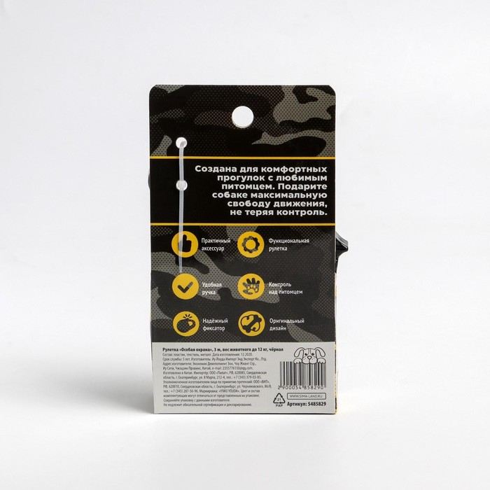 Рулетка «Особая охрана» 3 м, max=12 кг, чёрная