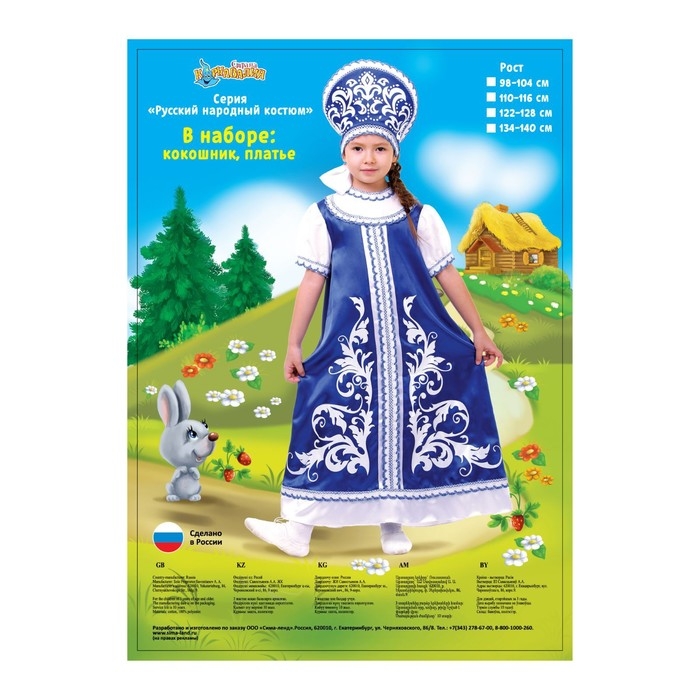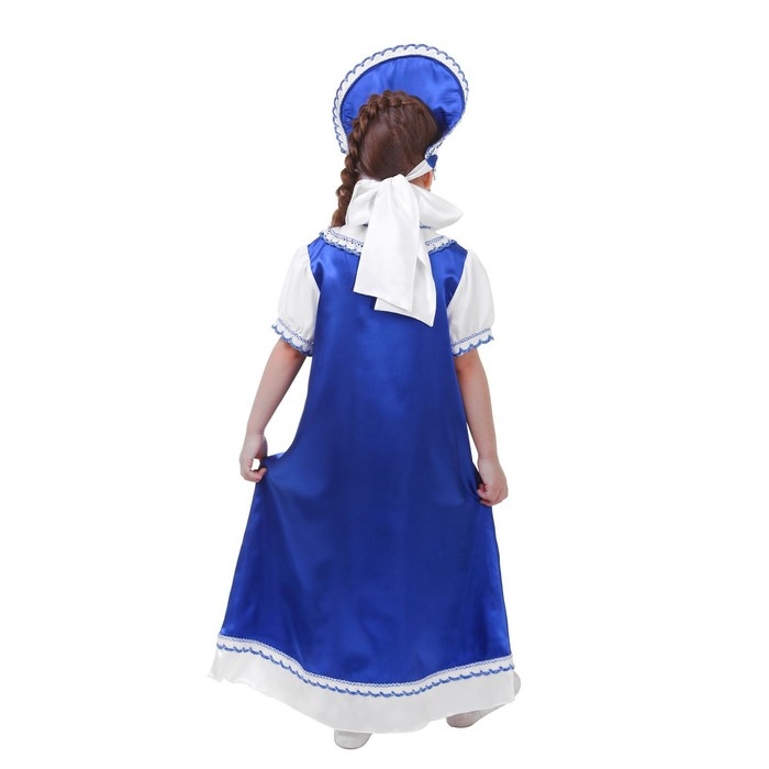 Русский костюм для девочки: платье с кокеткой, кокошник, р-р 60, рост 110-116 см, цвет синий превратит вашу дочку в настоящую славянскую красавицу! Такой образ — это потрясающая возможность с головой окунуться в атмосферу народных сказок и сыграть на сцене театра.