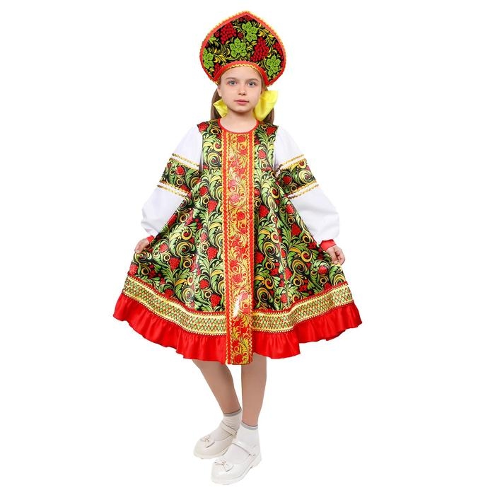 Русский народный костюм для девочки «Рябинка», платье, кокошник, р. 32, рост 122-128 см