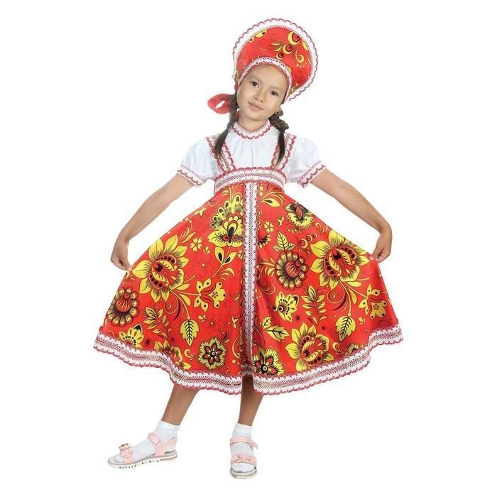 Русский народный костюм «Хохлома красная», платье, кокошник, р. 30, рост 110-116 см