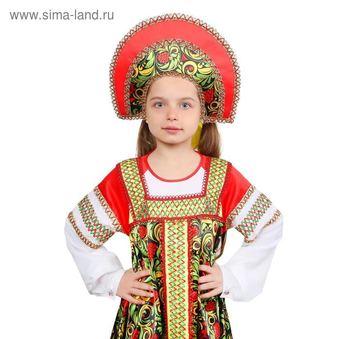 Русский народный костюм для девочки «Рябинка», платье, кокошник, р. 32, рост 122-128 см