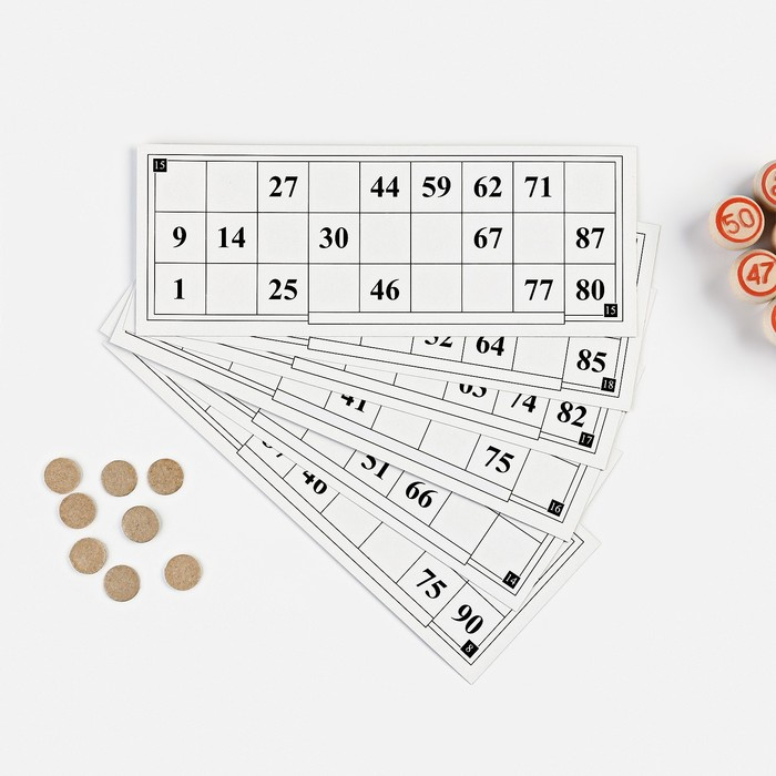 Правила игры: ведущий достаёт из мешочка по одному бочонку с числом и называет его вслух, а остальные игроки закрывают названные числа жетонами для накрывания на своих карточках лото. Игра продолжается до того момента, пока у кого-нибудь из игроков не закроются все числа на одной из карточек. Этот игрок победил.