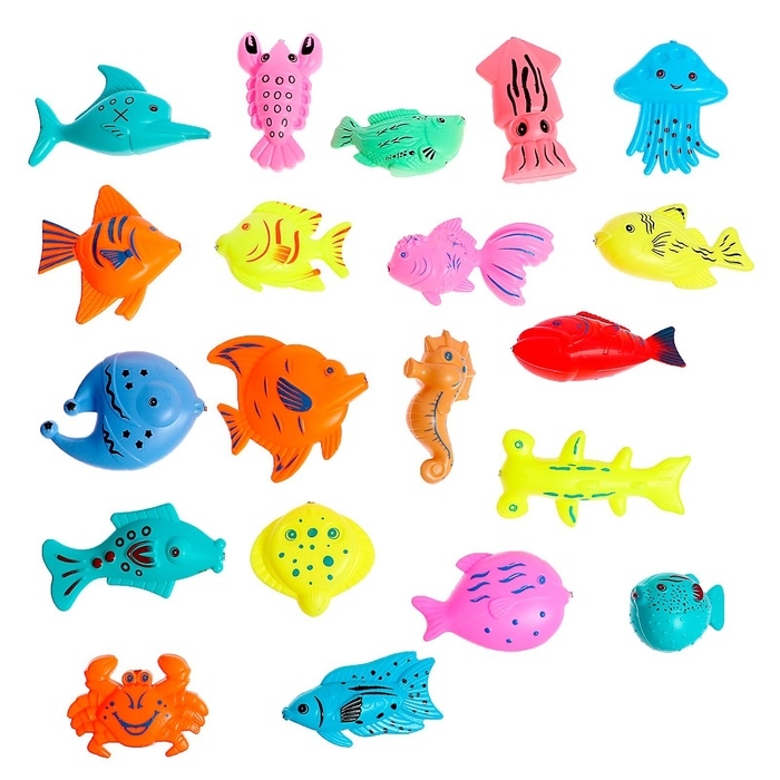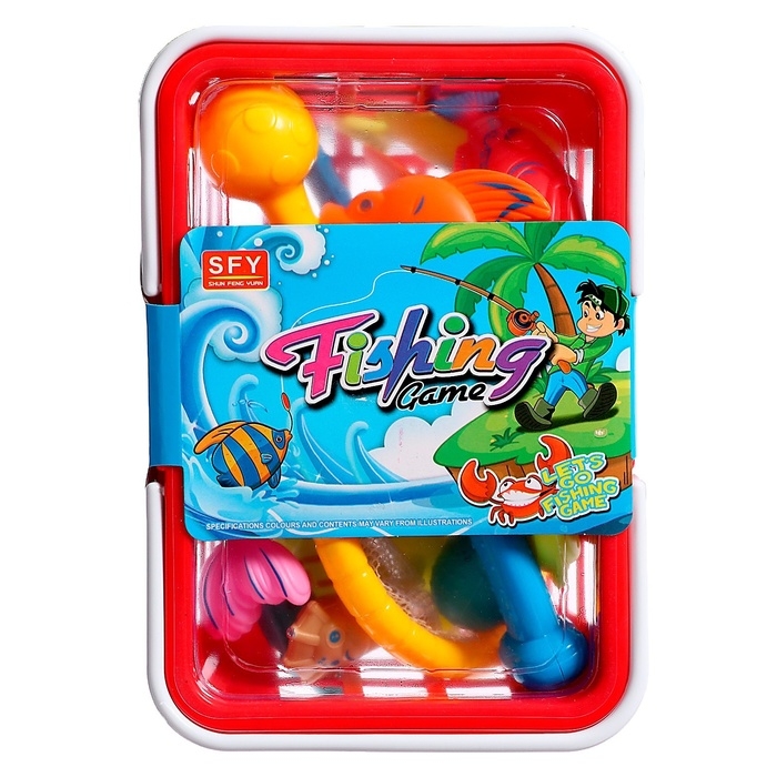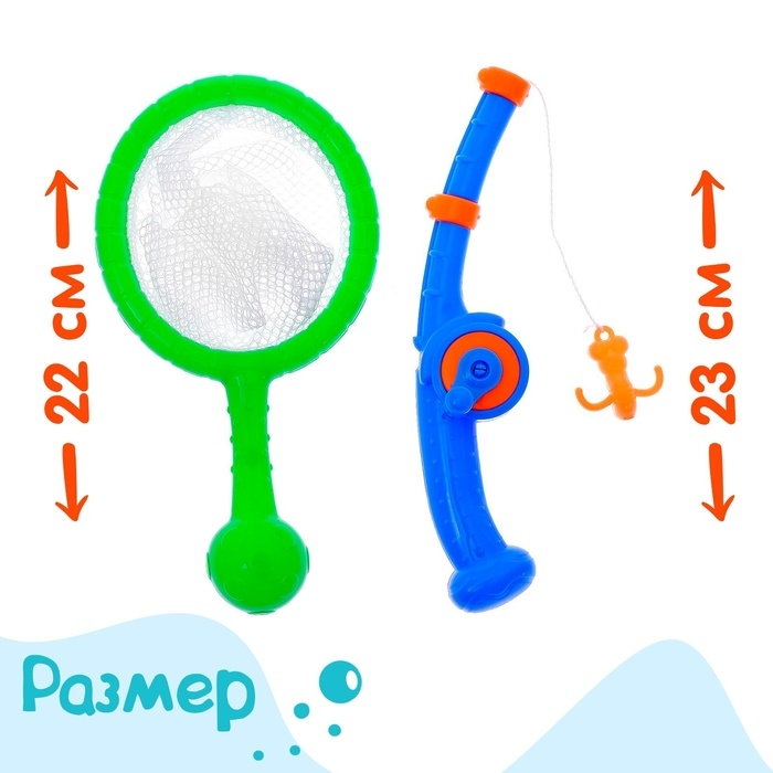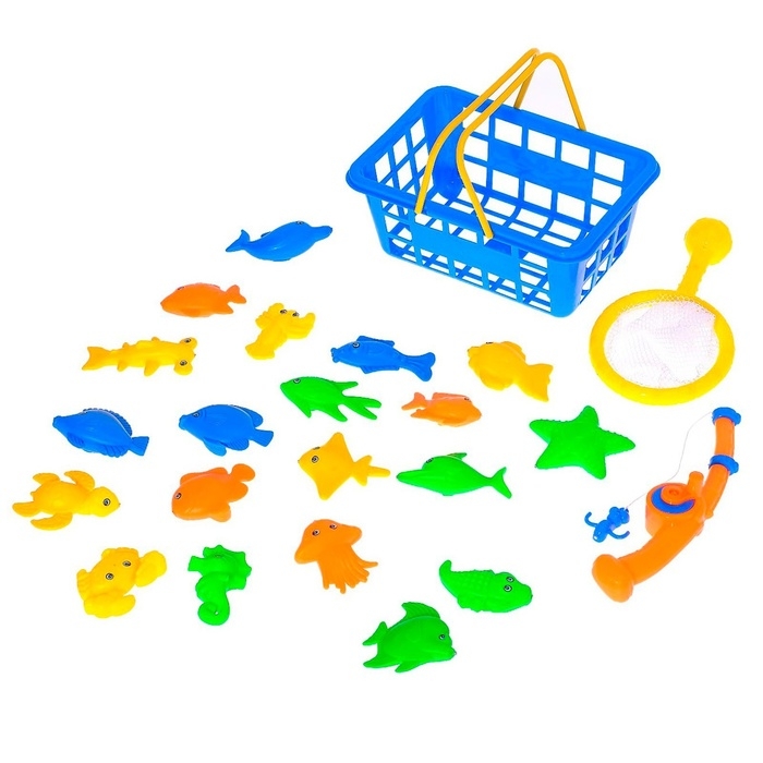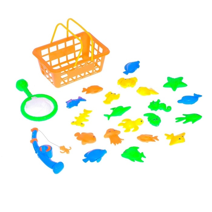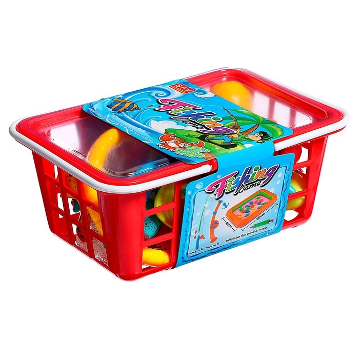Рыбалка «Волна приключений» в корзине: 1 удочка, 1 сачок, 20 рыбок, МИКС