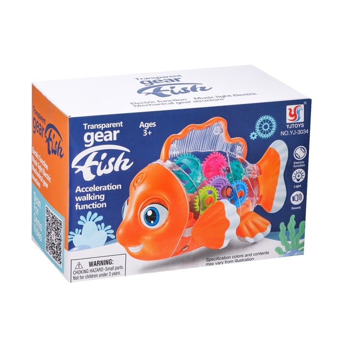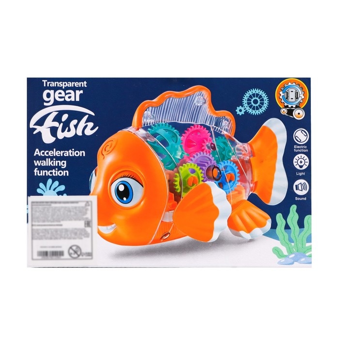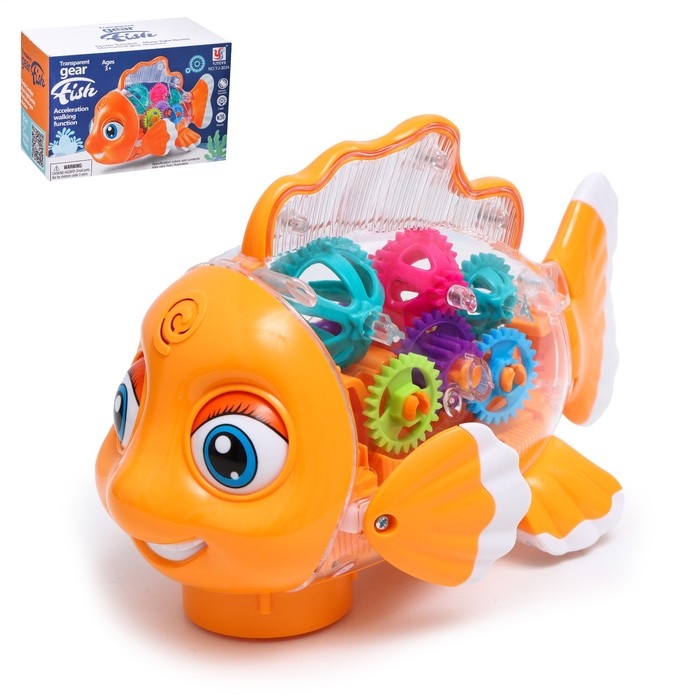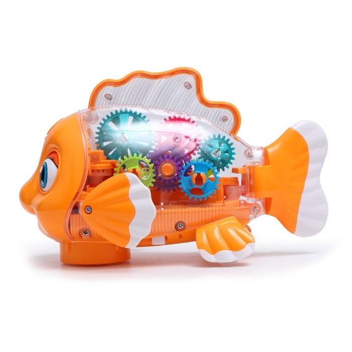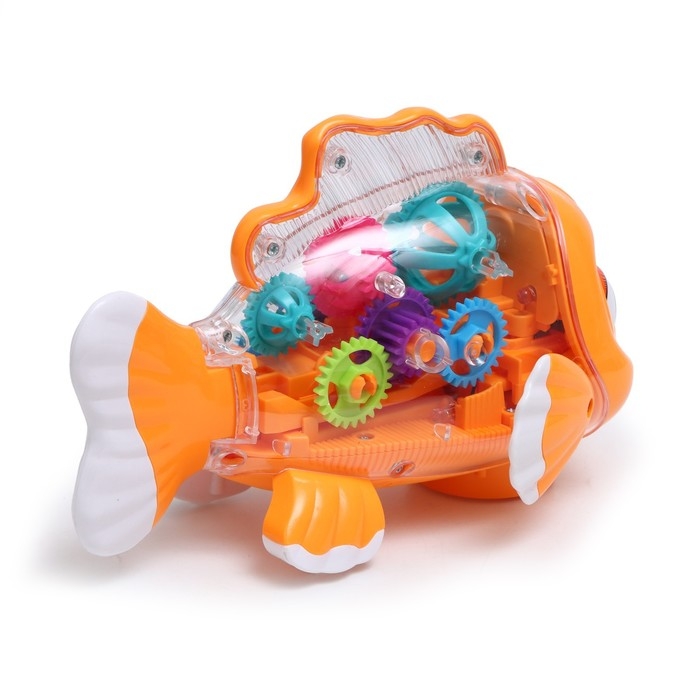 Рыбка «Шестерёнки», свет и звук, работает от батареек, цвет оранжевый