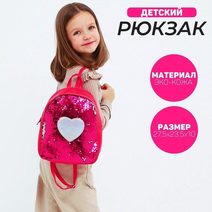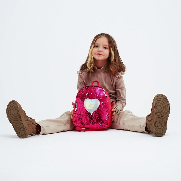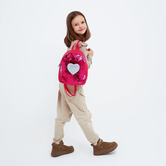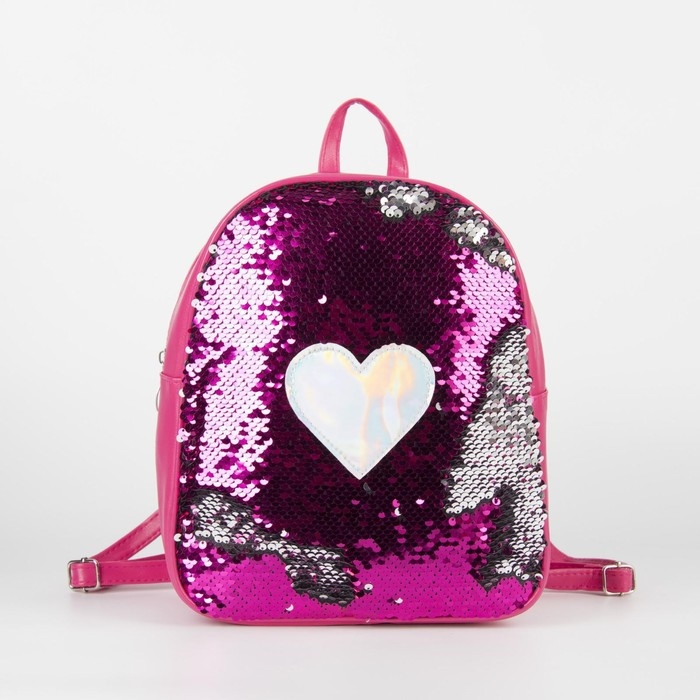 Рюкзак детский для девочки с пайетками «Сердце», отдел на молнии, цвет розовый