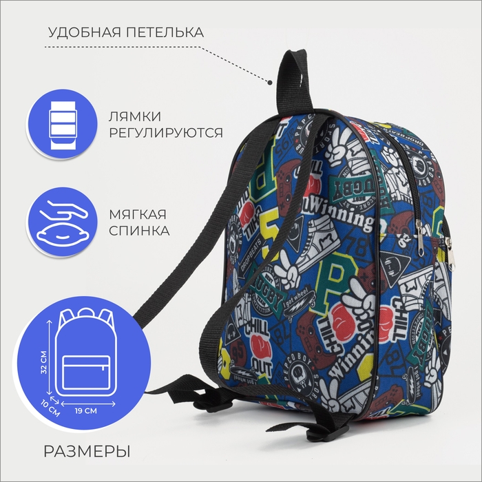 Рюкзак детский на молнии, цвет синий