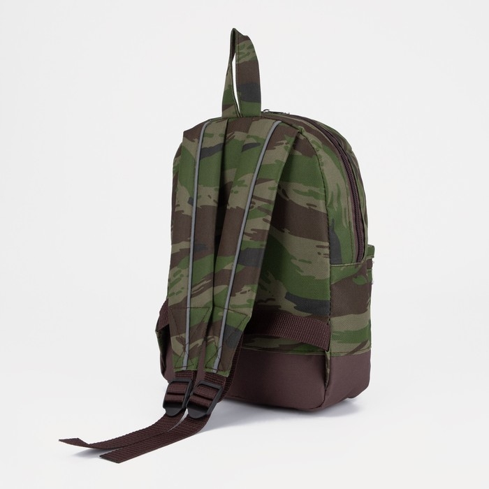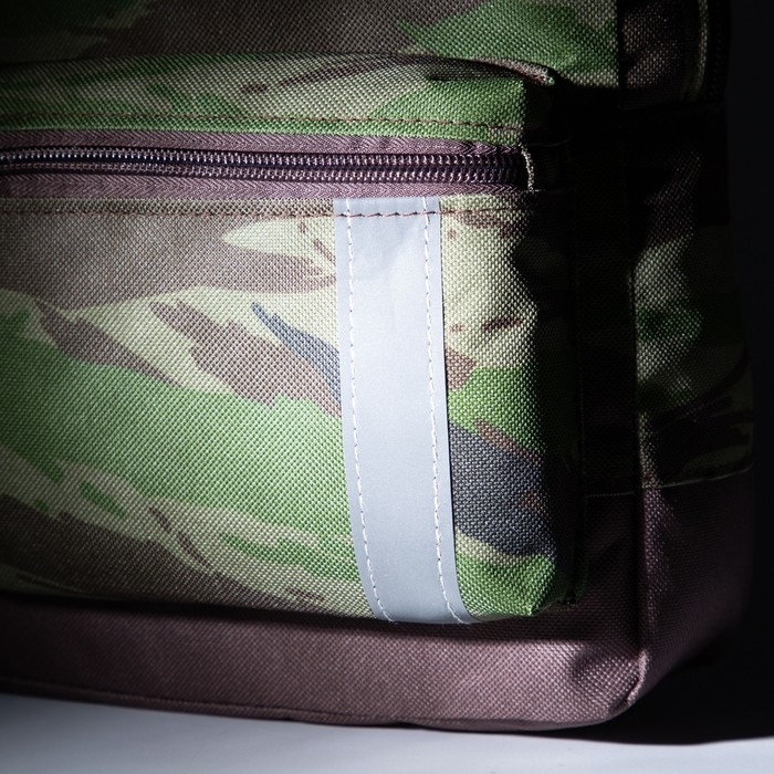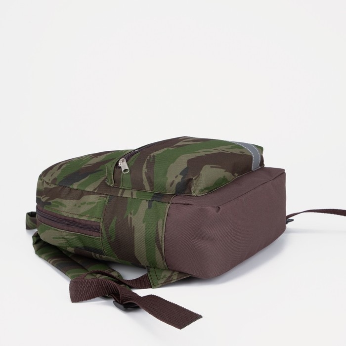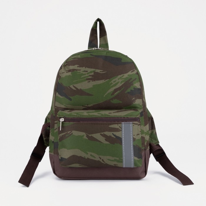 Рюкзак детский на молнии, наружный карман, светоотражающая полоса, цвет хаки/камуфляж