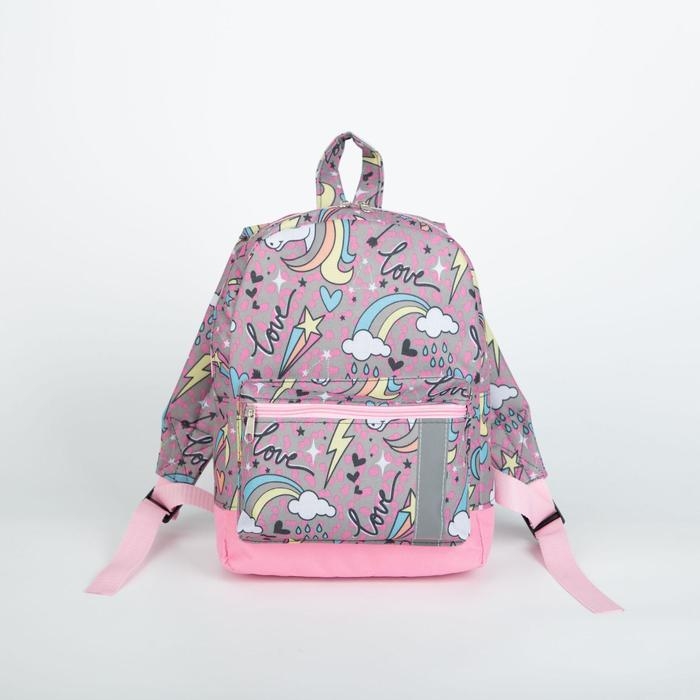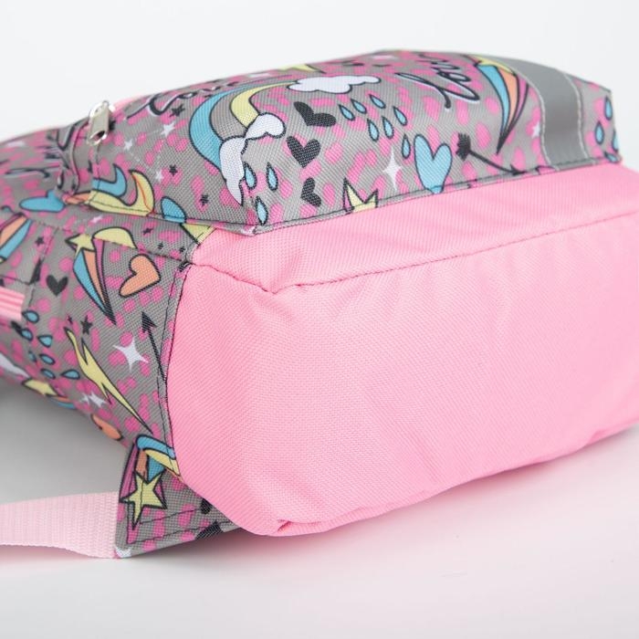 Рюкзак детский на молнии, наружный карман, светоотражающая полоса, цвет серый/розовый