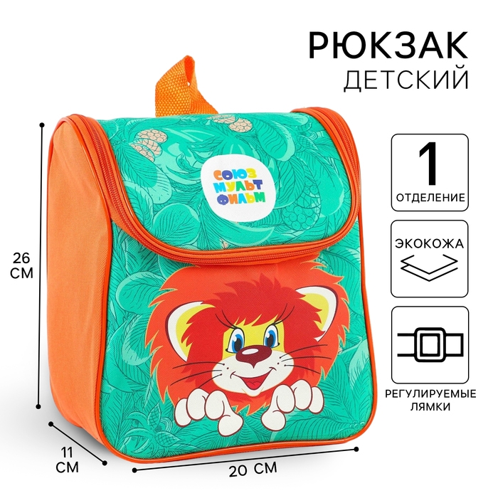 Рюкзак детский на молнии сверху, Текстиль, 20 см х 11 см х 26 см, "Львёнок и Черепаха", Союзмультфильм