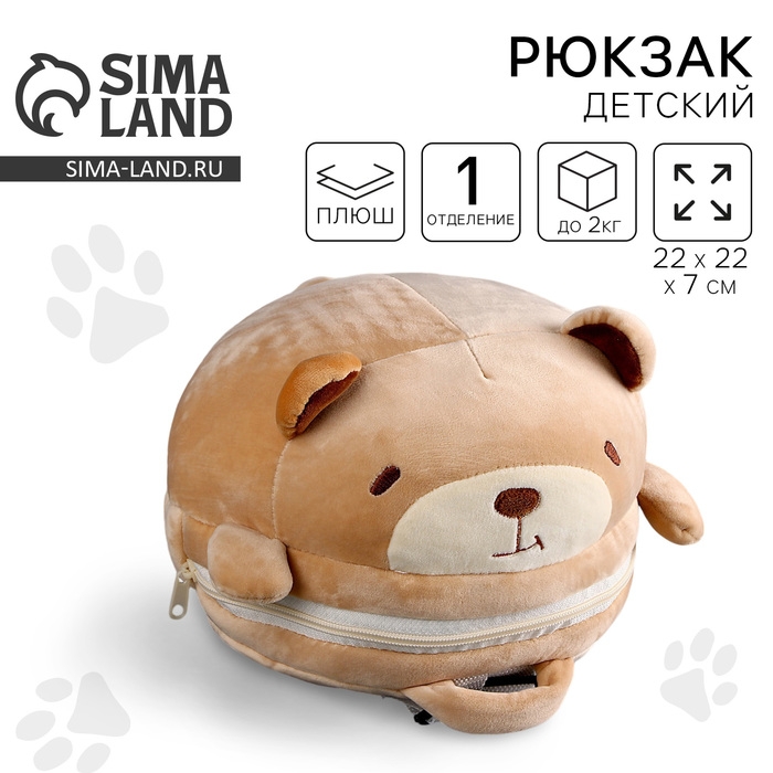 Рюкзак детский плюшевый для девочки «Медведь», 22 х 7 х 22 см