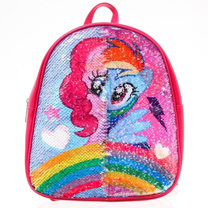 Рюкзак детский с двусторонними пайетками, 10 см х 23 см х 27 см "Пинки Пай и Радуга Дэш", My Little Pony