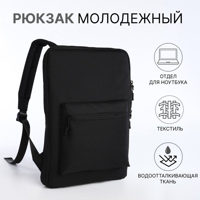 Рюкзак для ноутбука из текстиля на молнии, наружный карман, цвет чёрный