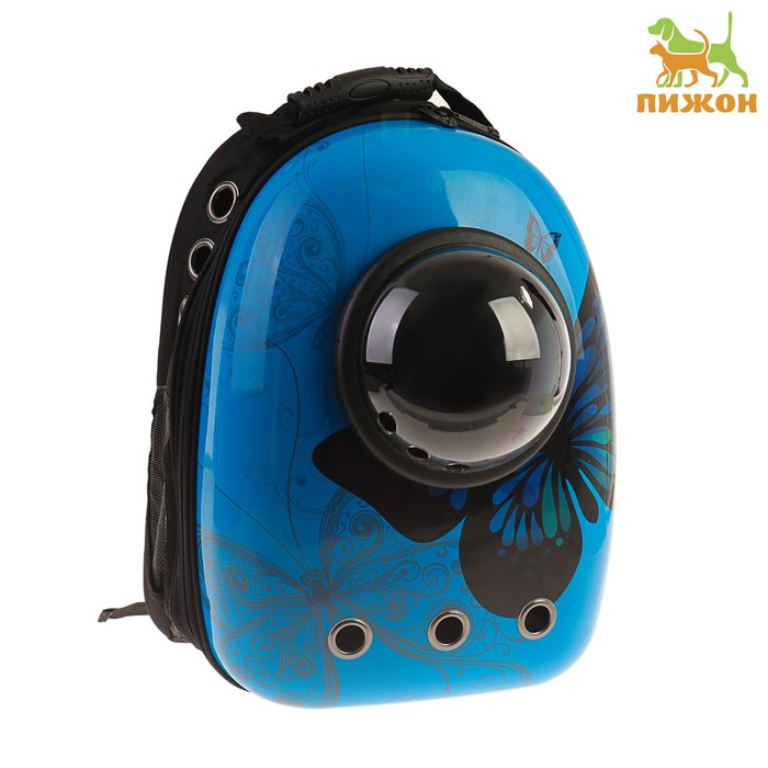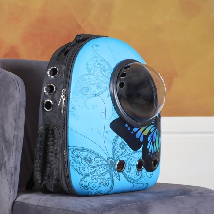 Рюкзак для переноски кошек и собак "Бабочка", с окном, 32 х 26 х 44 см, голубой