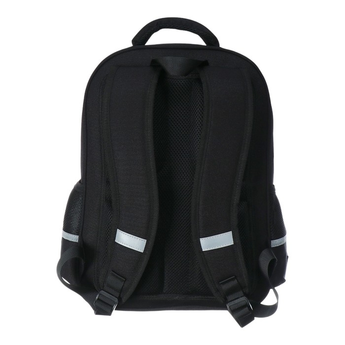 Комфорт и функциональность обеспечивают: эргономичная, вентилируемая, с анатомическими вставками спинка; широкие регулируемые лямки анатомической формы; большое отделение для тетрадей и учебников; отделение для тетрадей с органайзером; ручка-подвес из надежного материала, устойчивого к истиранию с усиленным креплением, выдерживающая большие нагрузки; мягкая эргономичная ручка; по два светоотражающих элемента на лямках и боковых карманах; усиленное дно рюкзака оснащено резиновыми ножками, защищающими от загрязнения и влаги; кольцо для брелока/бейджика; фиксатор лямок; потайной карман для магнитной карты; два боковых кармана.