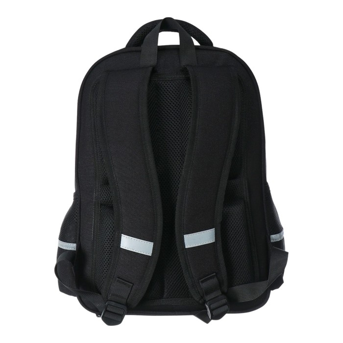 Комфорт и функциональность обеспечивают: эргономичная, вентилируемая, с анатомическими вставками спинка; широкие регулируемые лямки анатомической формы; большое отделение для тетрадей и учебников; отделение для тетрадей с органайзером; ручка-подвес из надежного материала, устойчивого к истиранию с усиленным креплением, выдерживающая большие нагрузки; мягкая эргономичная ручка; по два светоотражающих элемента на лямках и боковых карманах; усиленное дно рюкзака оснащено резиновыми ножками, защищающими от загрязнения и влаги; кольцо для брелока/бейджика; фиксатор лямок; потайной карман для магнитной карты; два боковых кармана.