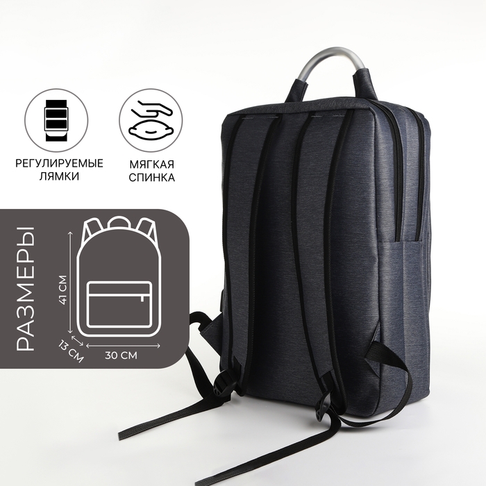 Рюкзак городской на молнии, 2 кармана, с USB, цвет серый