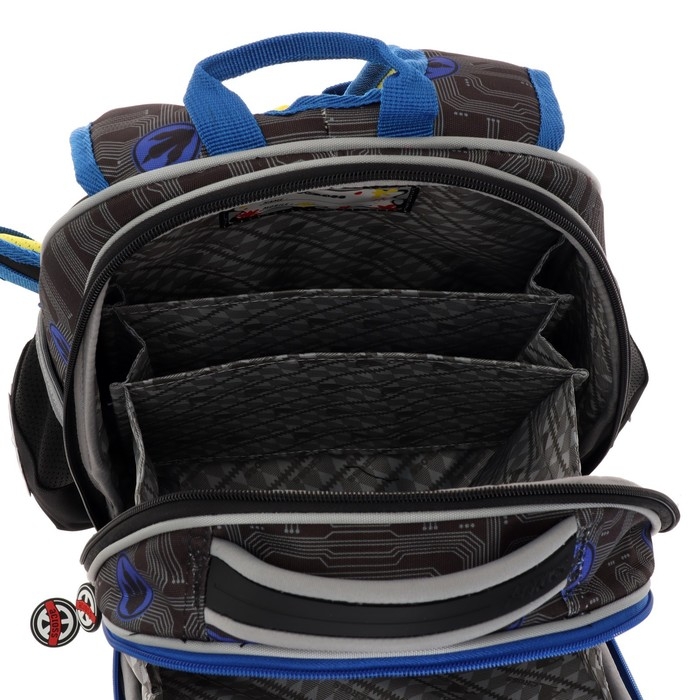 Рюкзак имеет лямки анатомической формы с дышащей тканью, с регулировкой по длине, выполнен исключительно из высококачественных материалов, является гипоаллергенным. Рельефная ортопедическая спинка с каналами для циркуляции воздуха и сетчатой мембраной. В основном, самом большом отделении расположены жесткие разделители в переднем отделении предусмотрен органайзер. Два боковых сетчатых кармана. Усиленная ручка обеспечивает надежную фиксацию в руке ребёнка, а также имеется дополнительная петля, чтобы повесить ранец на крючок. По всей поверхности рюкзака (со всех сторон) расположены светоотражающие элементы. Рюкзак выполнен из влагостойкого материала.