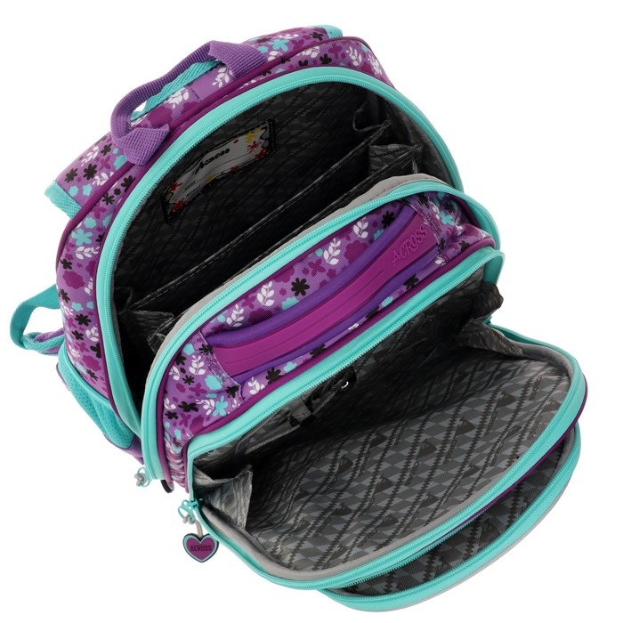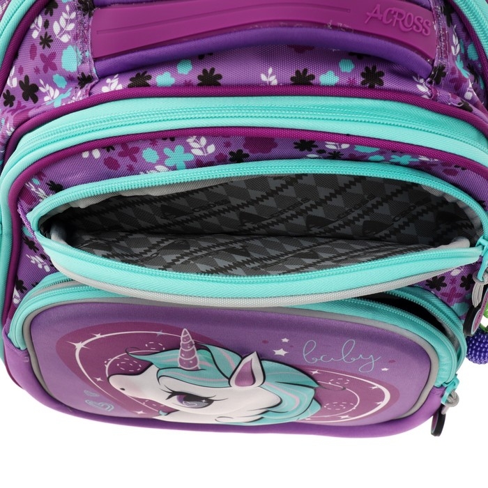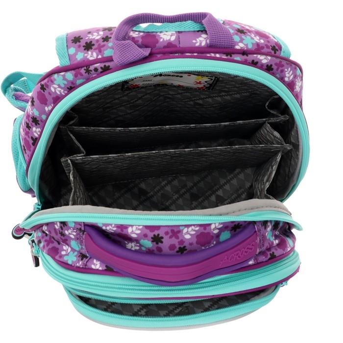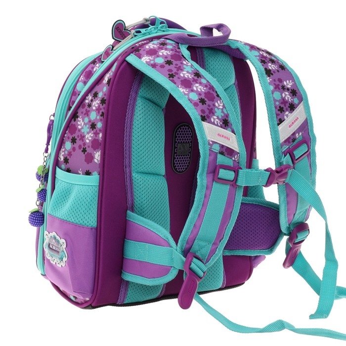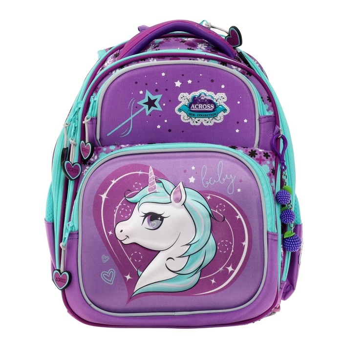 Рюкзак каркасный 35 х 28 х 15 см, Across, наполнение: мешок, пенал, брелок, фиолетовый
