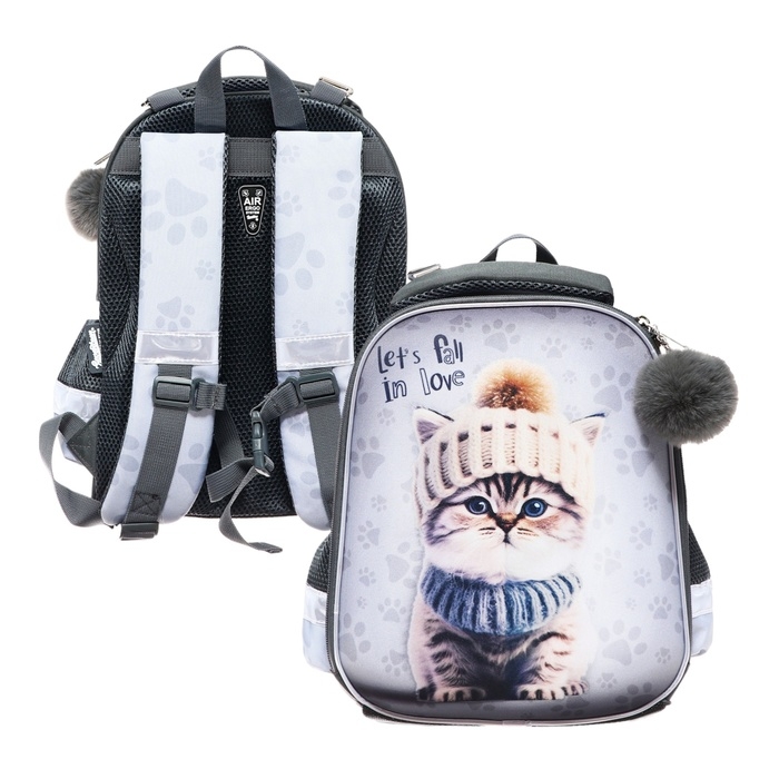 Рюкзак каркасный, 35х26х13, Seventeen, девочка EVA, серый