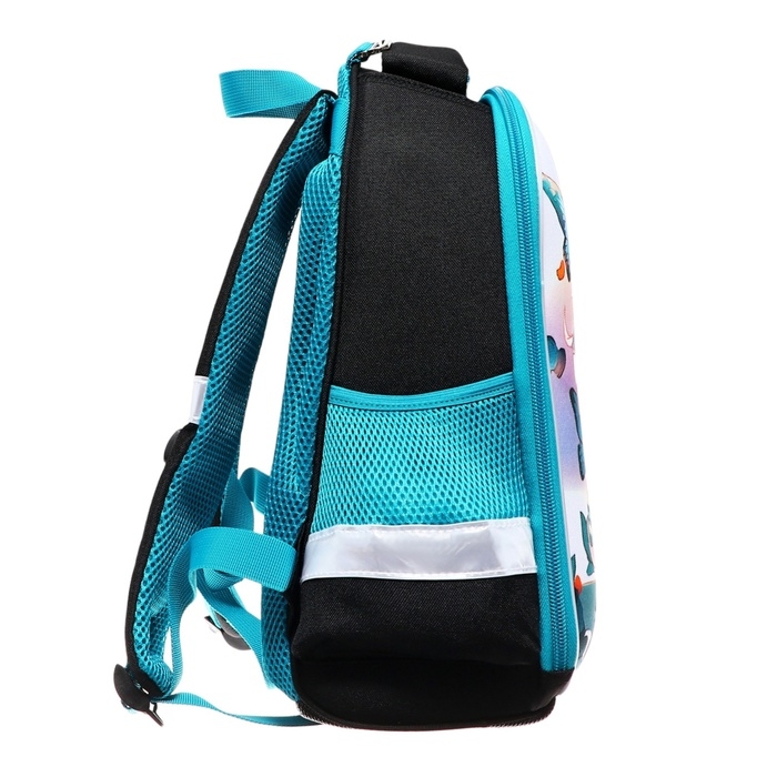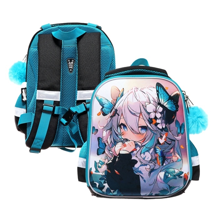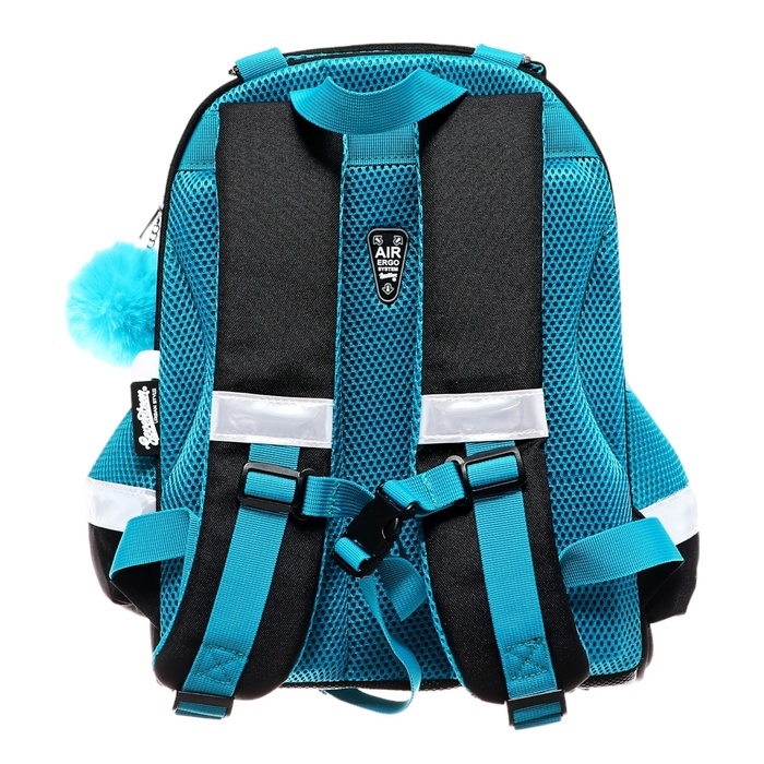 Размер 35х26х13 см. Ранец с одним отделением на молнии. Внутри основного отделения - разделители для книг и тетрадей; эргономическая спинка Air Ergo Seventeen выполнена в виде накладок анатомической формы из нескольких слоев вспененных синтетических материалов, обтянутых воздухообменной сеткой; передняя панель и спинка выполнены из легкого, водонепроницаемого и устойчивого к деформации материала EVA, благодаря чему ранец держит форму. Лямки анатомической S-образной формы обтянуты воздухообменной сеткой, регулируются по длине; на лямках предусмотрена регулируемая грудная стяжка, которая снимает часть нагрузки с плеч и лучше фиксирует рюкзак на теле. По бокам - вместительные сетчатые карманы. Дно рюкзака выполнено из прорезиненного материала, которому не страшны влага и грязь. Удобная уплотненная ручка для переноски и петелька для подвешивания. Для безопасности рюкзак снабжен светоотражающими элементами.