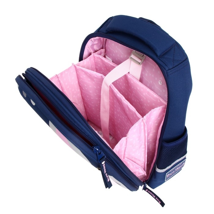 Рюкзак имеет два основных отделения: первое отделение содержит органайзер с молнией и карман-сеточку, второе отделение состоит из трех частей с двумя разделителями с фиксирующим ремнем и дополнено карманом на молнии для карточки. Рюкзак снабжён четырьмя светоотражающими элементами. Усиленное дно рюкзака оснащено резиновыми ножками, защищающими от загрязнения и влаги.